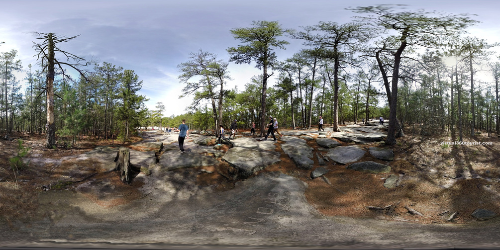 Climb Stone Mountain near Atlanta Georgia in virtual reality. Start at the base of the mountain looking up at the enormous bas-relief on its north face, the largest bas-relief in the world. The carving depicts three figures of the Confederate States of America: Stonewall Jackson, Robert E. Lee, and Jefferson Davis. Then work your way to the summit at 1,686 feet (514 m). See a train pass by, look out over Atlanta and Georgia, and watch the cable cars pass overhead.